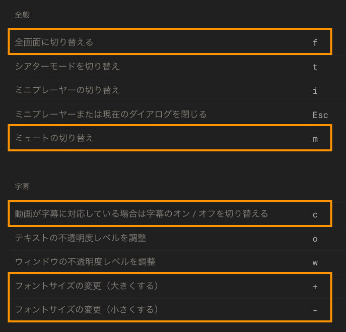 - 映画鑑賞や語学では字幕に関するショートカットが便利